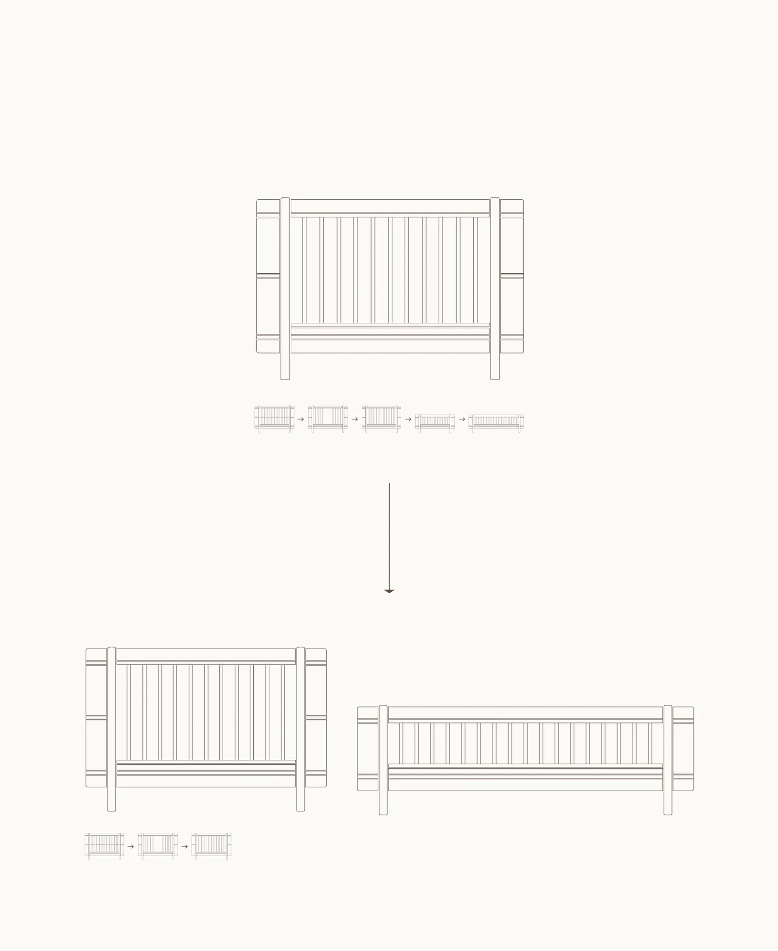 When one child becomes two, Mini+ cot bed incl. junior kit can also be supplemented with a Mini+ sibling kit. This kit contains additional parts to build a crib for the youngest and a junior bed for the oldest all at the same time. Whether the children are in one room or separate rooms, the aesthetics of your home will stay intact.